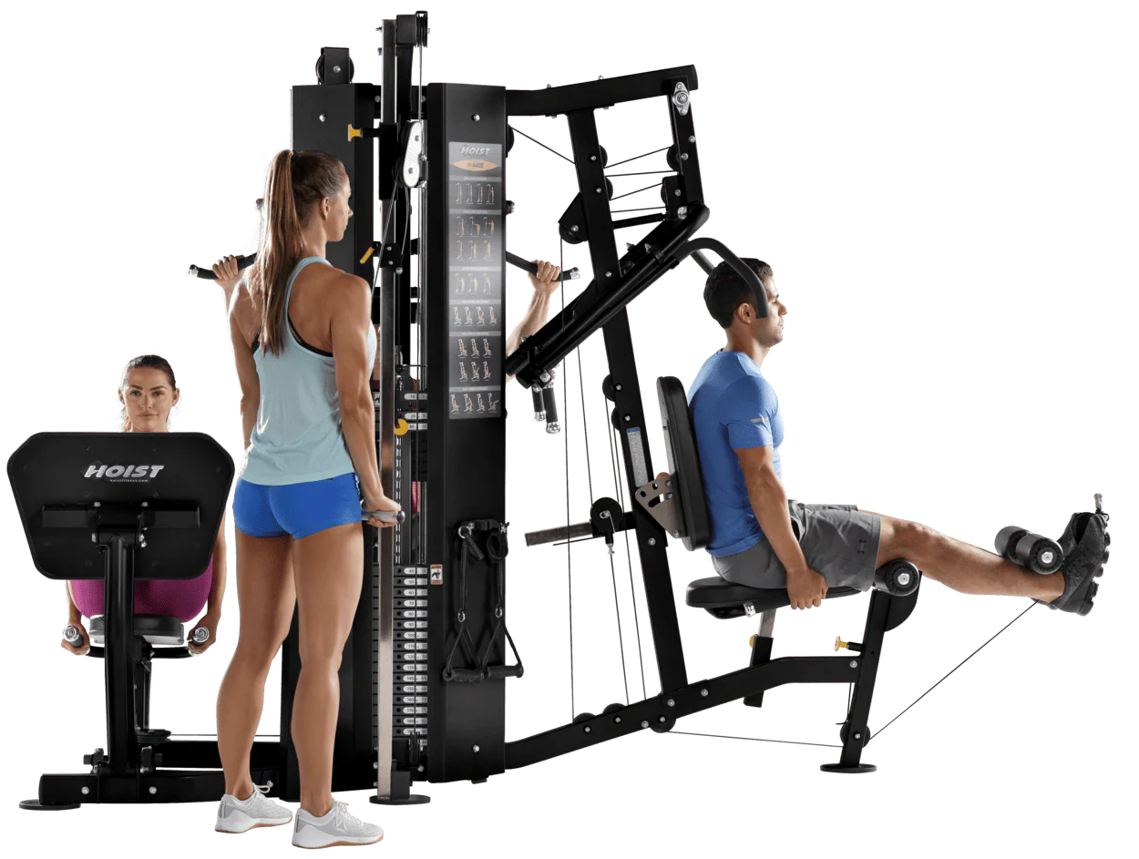 Designed with the smooth, natural, and exceptionally quiet motion that has become the HOIST® trademark, the H-4400 is the ultimate premium 4-station gym for light commercial environments, corporate fitness centers, and high-end residential setups.